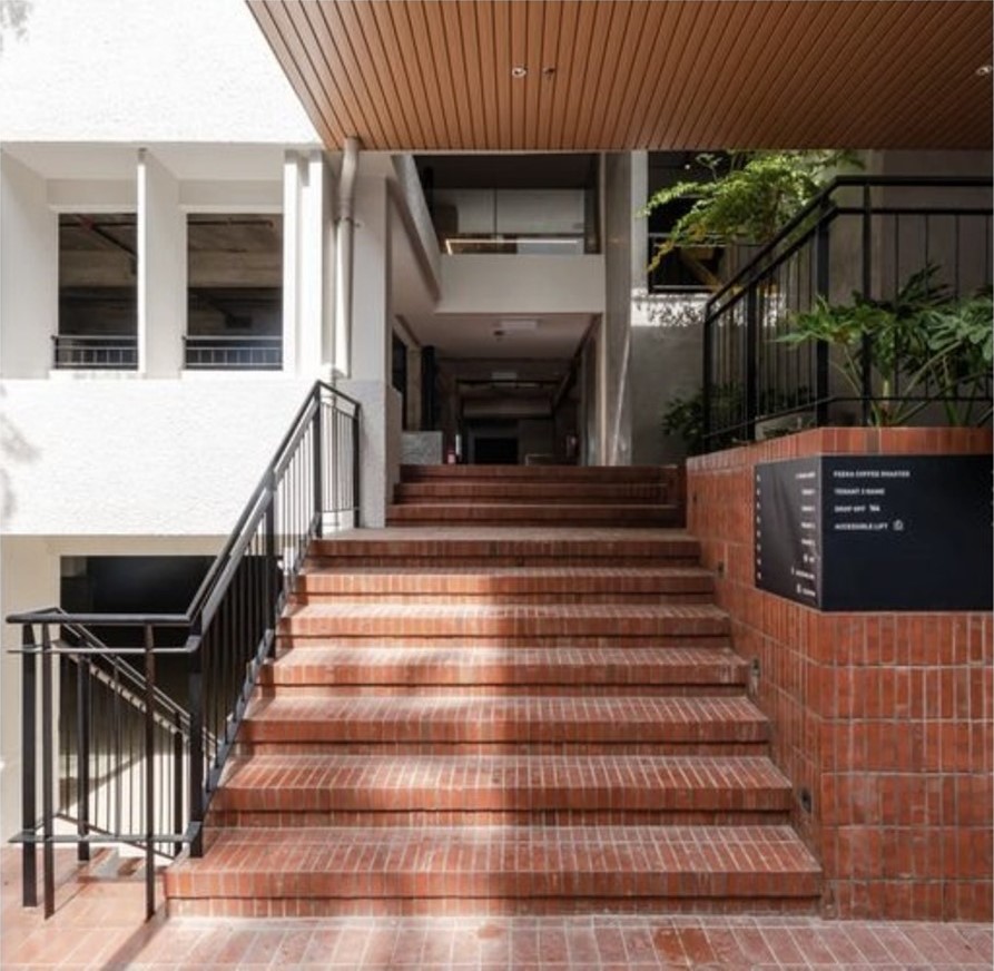 A charming building with quaint cafes and restaurants, captivates people for a unique dining experience. This retail space holds a cosy ambience with its raw and natural settings surrounded by lush greens; pleasant to the eyes of its visitors.